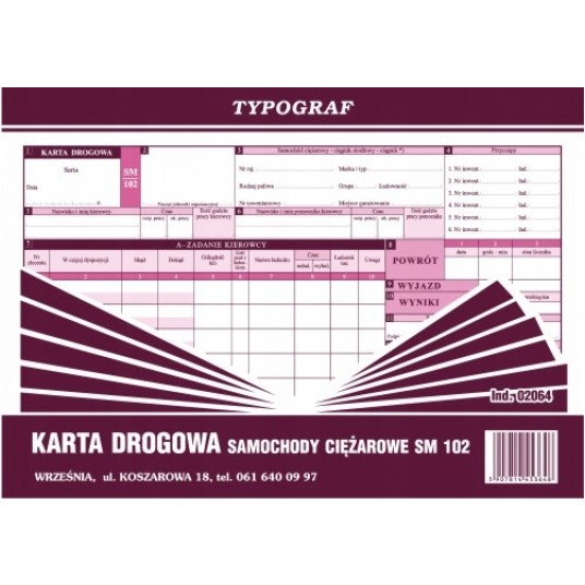 Druk karta drogowa samochodu ciężarowego sm102 Typograf