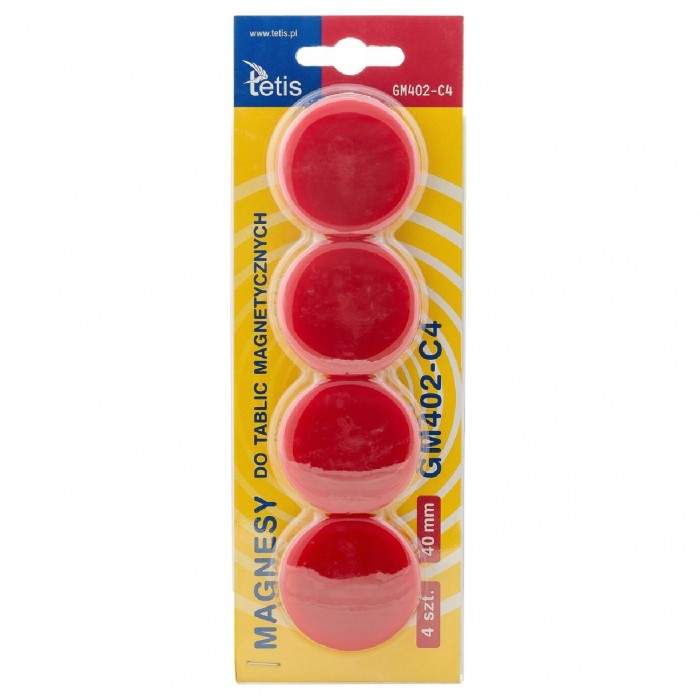 Magnesy Tetis gładkie czerwone 40mm 4 sztuki