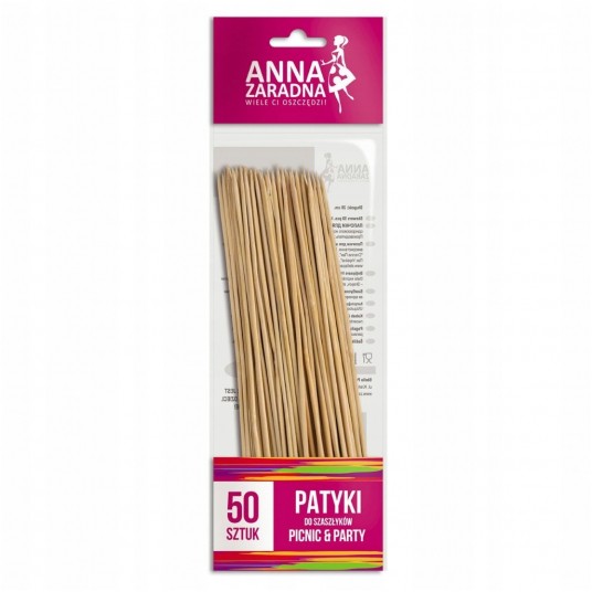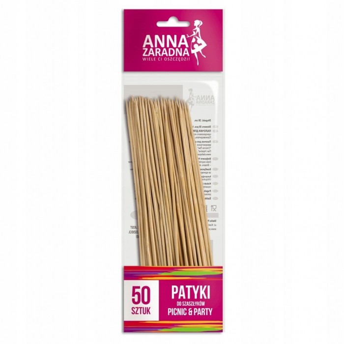 - Doskonałe do szaszłyków i innych dań z rusztu. - Wykonane z bambusa, zaostrzone na jednym końcu. - Funkcjonalna tasiemka pozwala na wielokrotne otwieranie/zamykanie woreczka. - Długość – 20cm. - Średnica – 2mm. - 1 woreczek OPP z eurowycięciem – 50szt.