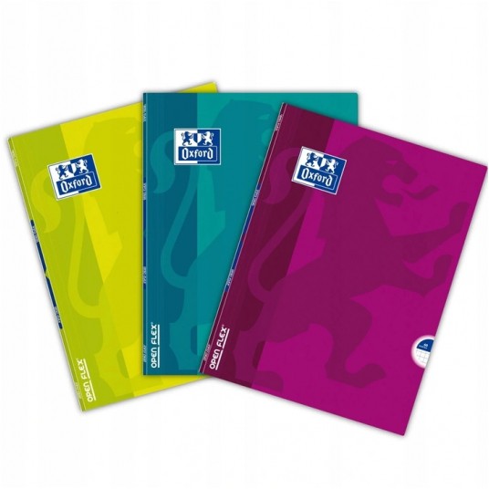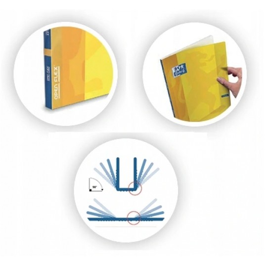 - Okładki zeszytów Open Flex, dzięki zastosowaniu wyjątkowego patentu produkcyjnego, są niezwykle elastyczne i wygodne oraz zapewniają optymalne otwarcie o 180°
