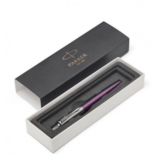 Korpus długopisu wykonany mistrzowsko ze stali nierdzewnej. Część dolna to stal szlifowana, pokryta fioletowym lakierem. Klip z polerowanej stali nierdzewnej. W opakowaniu prezentowym Parker. UWAGA: Wkład umieszczony jest w długopisie (kolor wkładu jest losowy).