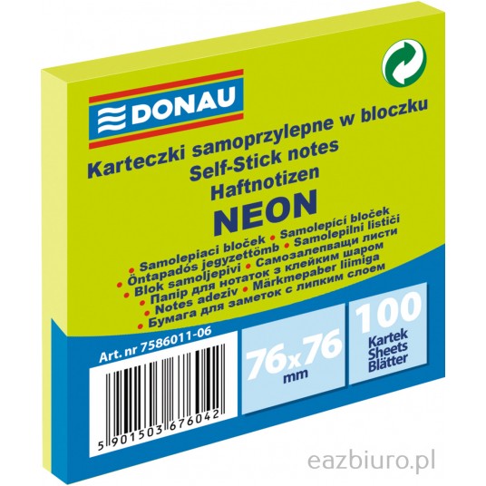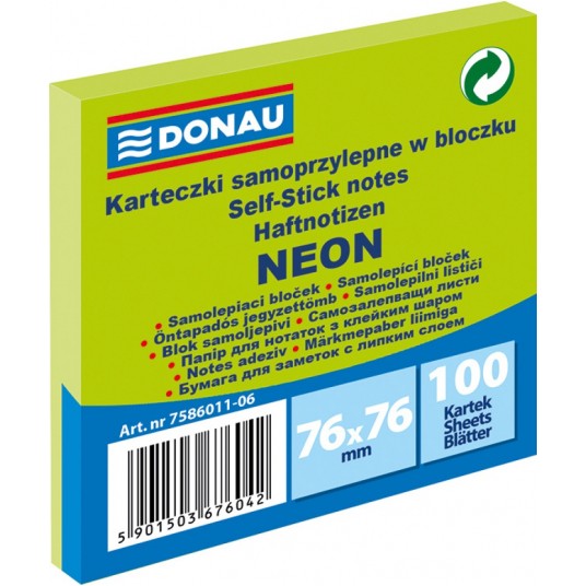 - Uniwersalne kolorowe karteczki, idealne do przekywania wiadomości, najwyższa jakość produktu - Ilość karteczek: 1x100 w rozmiarze 76x76mm - Gramatura: 70gsm (+/- 4%) - Klej usuwalny za pomocą wody - Posiada oznaczenie Zielony Punkt" (Der Grüne Punkt)- oznaczające udział w systemie recyklingu i odzysku odpadów wynikający z przepisów prawa polskiego i UE - Indywidualnie zabezpieczony folią z charakterystycznym czerwonym paskiem ułatwiającym otwieranie - Kolor neon zielony