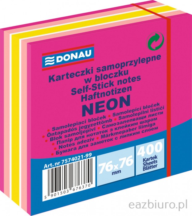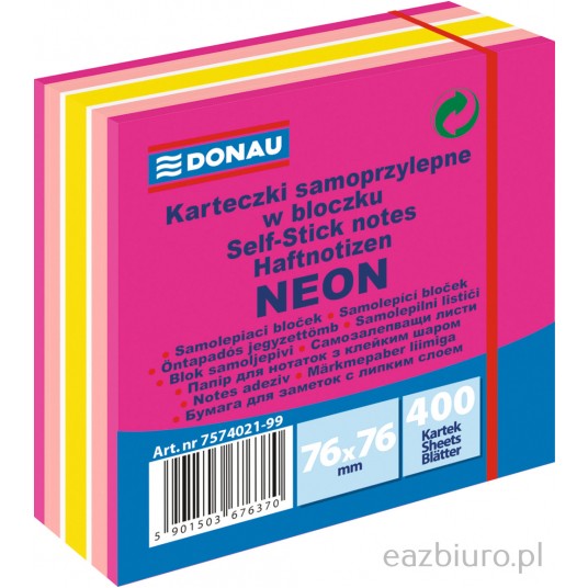 Bloczek samoprzylepny Donau 76x76 mm neon-pastel mix różowy 400 kartek