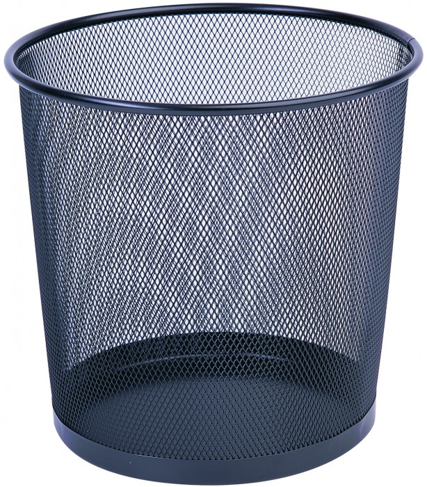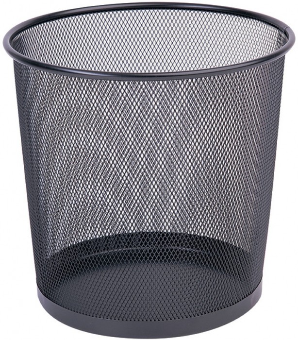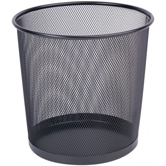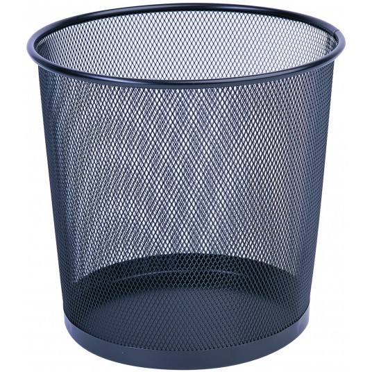 - Okrągły kosz na śmieci wykonany z metalowej siateczki powlekanej lakierem