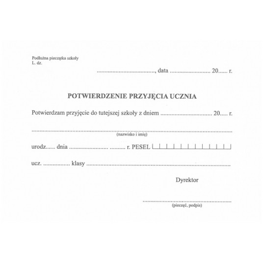 ZAWIADOMIENIE O PRZEKAZANIU UCZNIA VI/17 (KARTON) - zawiadomienie o przekazaniu ucznia (karton), wypełnia szkoła podstawowa przekazująca ucznia do innej szkoły. Format: A-5