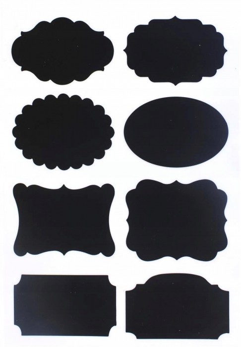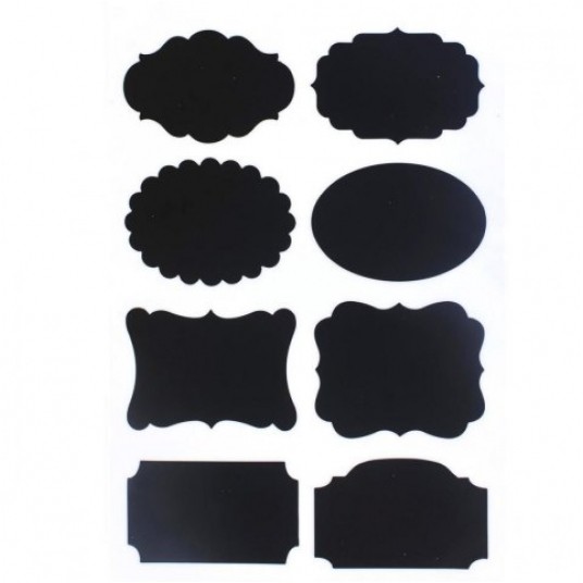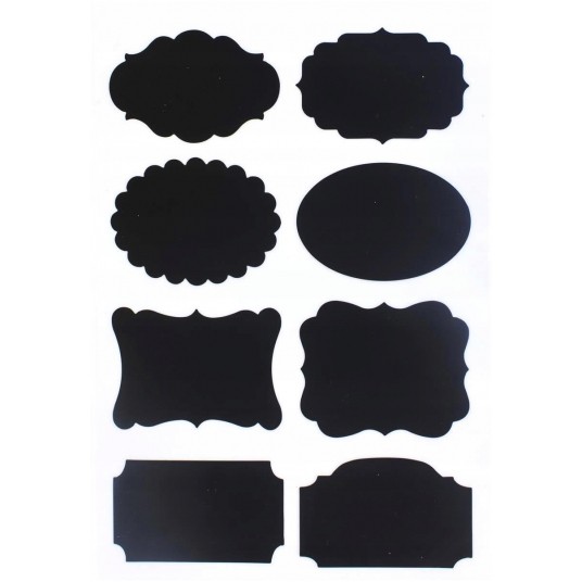 - 16 sztuk pojedynczych etykiet w opakowaniu - Samoprzylepne z folii po której można pisać kredą lub specjalnym markerem - Półprodukt dekoracyjny dla rękodzieła - Doskonały do zdobienia kartek okolicznościowych, pudełek i torebek na prezenty, opisywania zawartości słoików