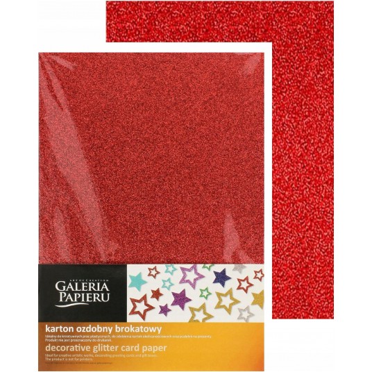 - Karton z brokatowym wykończeniem - Ilość: 5 arkuszy w opakowaniu - Nie przeznaczony do drukarek - Karton do zdobienia zaproszeń, kartek okolicznościowych, pudełek