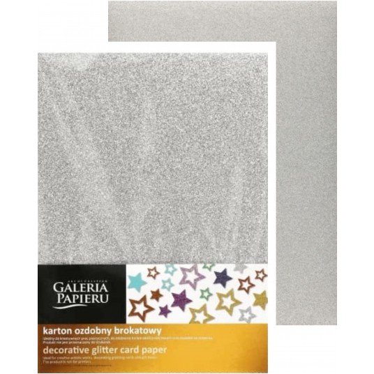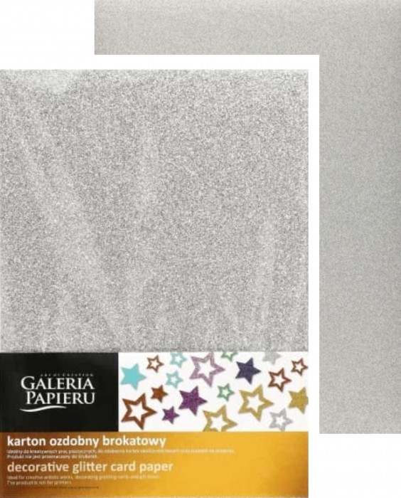 - Karton z brokatowym wykończeniem - Ilość: 5 arkuszy w opakowaniu - Nie przeznaczony do drukarek - Karton do zdobienia zaproszeń, kartek okolicznościowych, pudełek