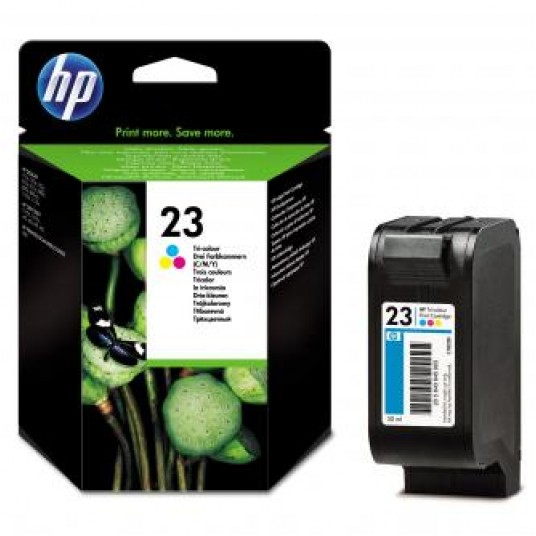 Nowość w ofercie Trójkolorowy atramentowy wkład drukujący HP 23 to wysokiej wydajności wkład zapewniający wyraźne i ostre wydruki or niezawodny druk strona po stronie, Pojemność 30 ml, Wydajność 690 stron A4 przy 5 pokrycia, Do drukarek HP Deskjet HP OfficeJet 7000;