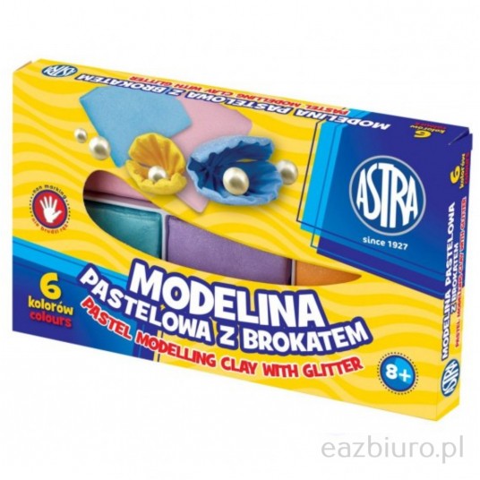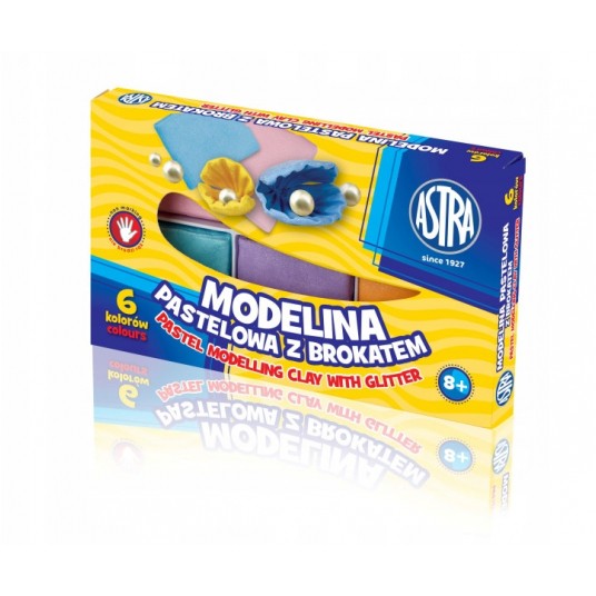 Modelina 6 kolorów Astra z brokatem pastelowa