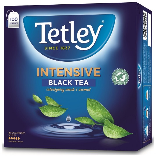 - Herbata czarna Intenisive Black - Tetley Intensive Black to starannie dobrana kompozycja najwyższej jakości czarnych herbat o wyjątkowym i intensywnym smaku oraz głębokim aromacie - Herbata posiada certyfikat organizacji Rainforest Alliance - Składniki: herbata czarna