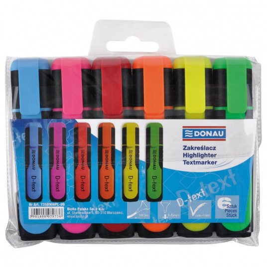 Zakreślacz fluorescencyjny Donau d-text mix 6 kolorów