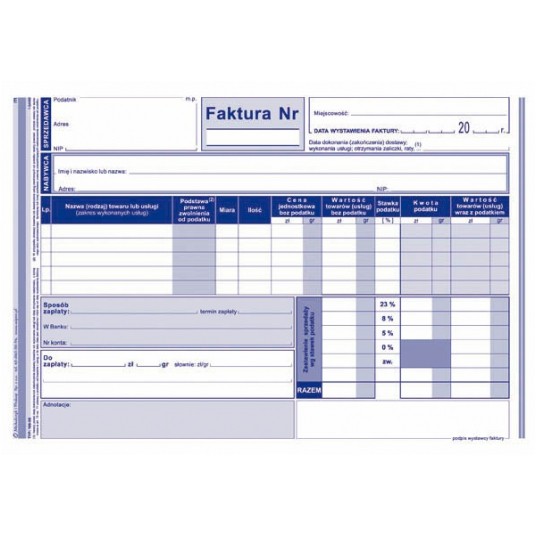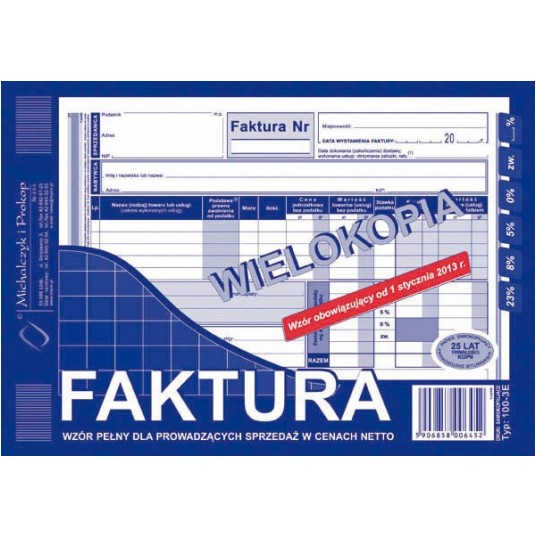 Druk faktura A5 netto wielokopia