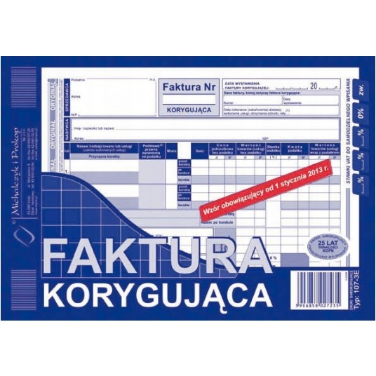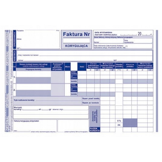 - Druk: jednostronny (oryginał + kopia)
