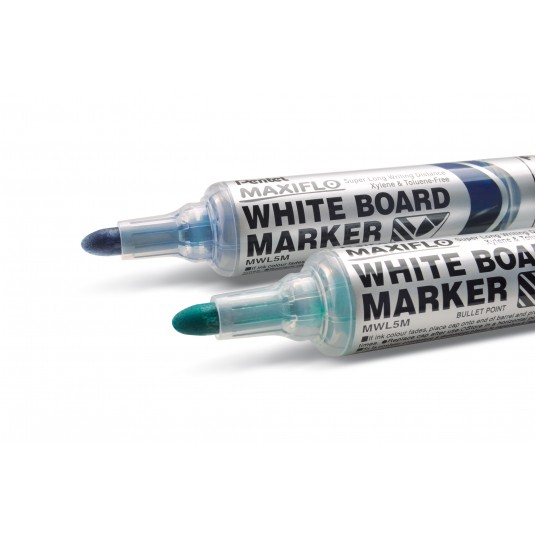- Marker MAXIFLO do białych i ceramicznych tablic. - Płynny tusz dozowany w razie konieczności nawilżenia końcówki za pomocą tłoczka (zamiast tradycyjnego sączka). - Marker pisze wyrazistą linią aż do ostatniej kropli tuszu. - Kilkakrotnie dłuższa linii pisania niż w standardowych markerach z sączkiem - 1100 m. - Nie zawiera substancji trujących ksylenu, toluenu ani polichlorku winylu. - Nadaje się również na papier, plastik, karton. - Wykonany w 50% z materiałów przetworzonych.