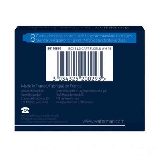 Naboje długie do pióra Waterman niebieskie Serenity Blue 8 szt.