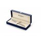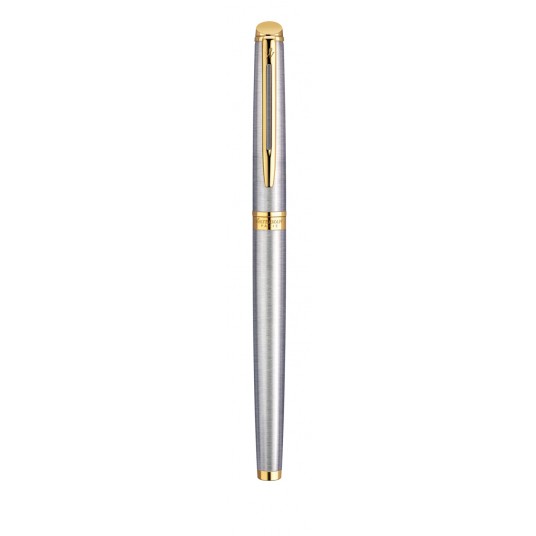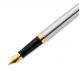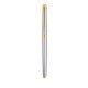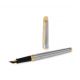 Korpus i nasadka w kolorze stali o eleganckim, satynowym połysku. Wykończenia platerowane złotem. Pióro wyposażone w stalówkę z wysokiej jakości stali nierdzewnej platerowaną 23-karatowym złotem. Pióro wykonane z najwyższej jakości stali nierdzewne