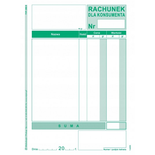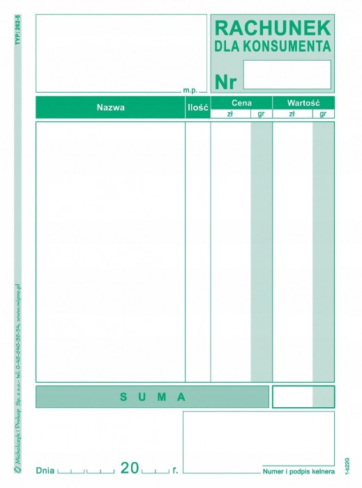 - Zastosowanie: rachunki i inne dowody sprzedaży