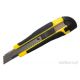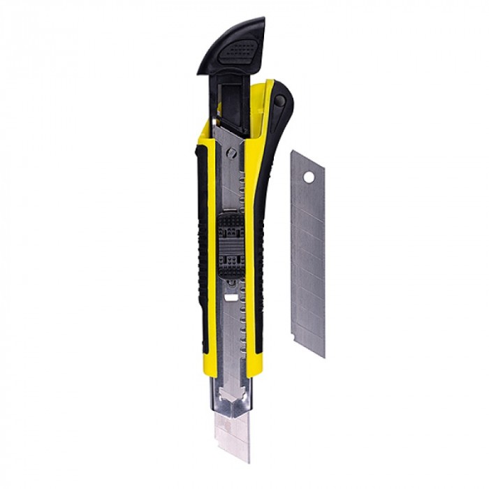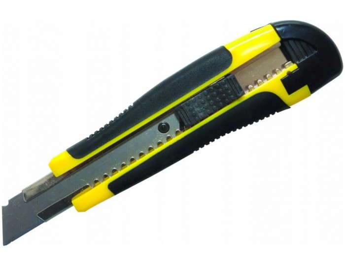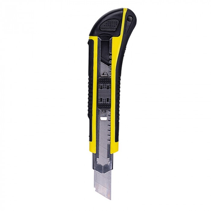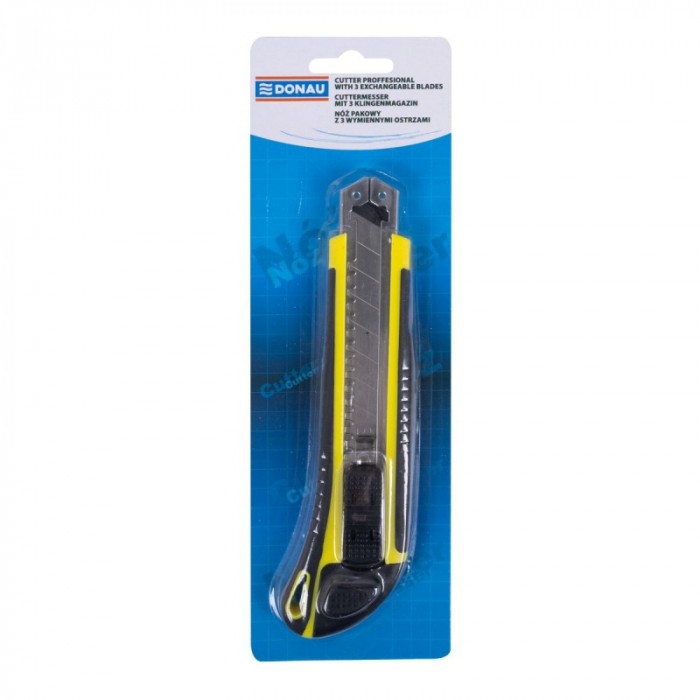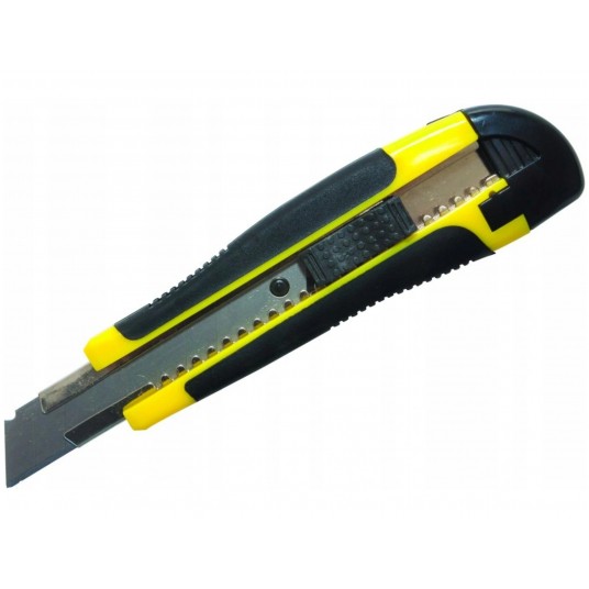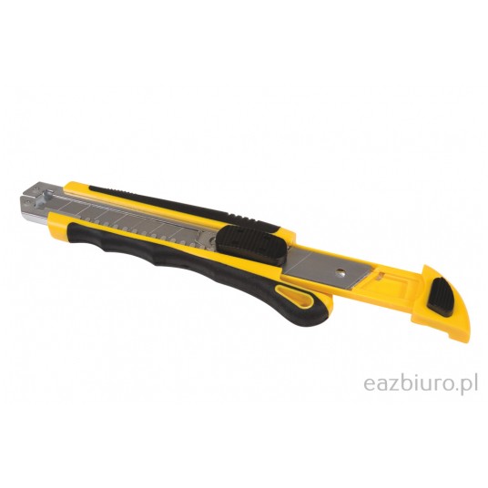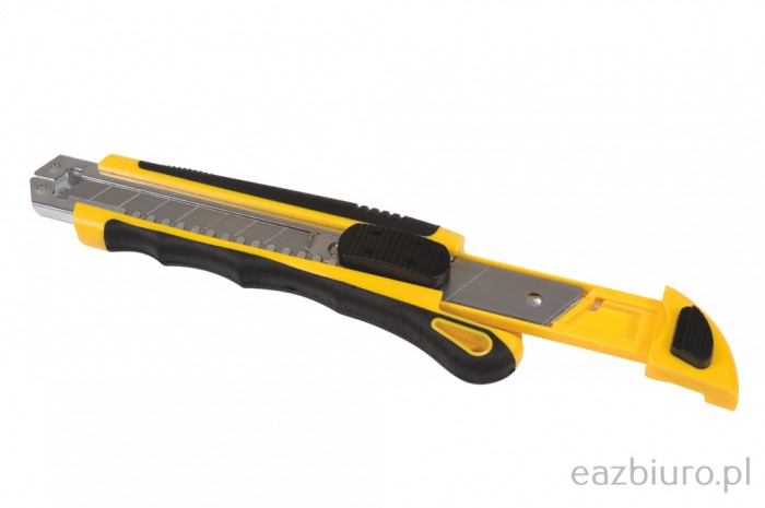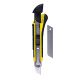 - Nowoczesny, profesjonalny nóż przeznaczony do cięcia papieru, kartonu i materiałów pakowych - Wysuwane 7 - częściowe ostrze z możliwością odłamywania stępionych części - Blokada unieruchamiająca ostrze - Wykonany z wytrzymałego plastiku, wyposażony w gumową rękojeść zapewniającą doskonałe trzymanie - Stalowa prowadnica ostrza gwarantuje stabilność i bezpieczeństwo pracy - Posiada magynek mieszczący dwa dodatkowe ostrza - Unikatowa konstrukcja suwaka umożliwia błyskawiczne wysunięcie zużytego ostrza z prowadnicy - System „Clip & Work” - przesuń suwak maksymalnie do tyłu, a ostrze samo zostanie pobrane z magynka - W zestawie znajdują się trzy ostrza - Obudowa posiada otwór umożliwiający zawieszenie - Szerokość ostrza: 18 mm - Długość ostrza: 100 mm
