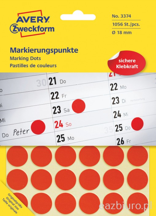 - Kolorowe, okrągłe etykiety w małych rozmiarach, do zaznaczania i organizowania
