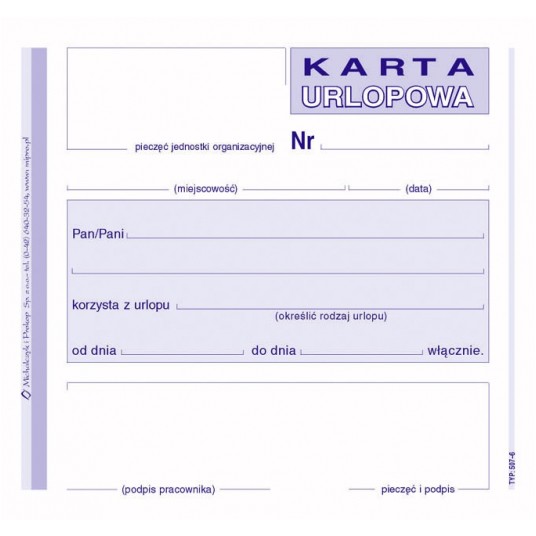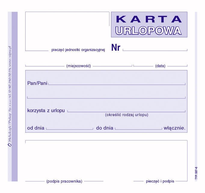 - Zastosowanie: druki kadrowe
