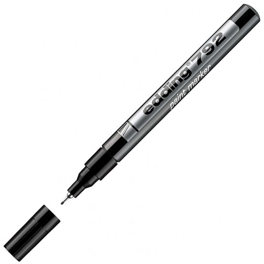 - Marker olejowy do wykonywania trwałych oznaczeń na niemal każdej powierzchni, gładkiej jak i porowatej - Tusz pigmentowy, dobrze kryjący i wysoce nieprzezroczysty, wodoodporny i szybkoschnący - Bardzo odporny na ścieranie - Bez dodatku toluenu i ksylenu - Odporny na działanie temperatury do 400 C (kolory: biały, żółty, srebrny widoczne jeszcze do 1000 C) - System kontroli dopływu tuszu do końcówki - Końcówka okrągła - Szerokość pisania: 1 - 2 mm - Kolor: czarny
