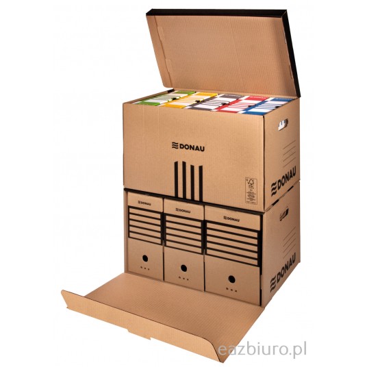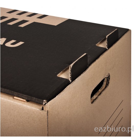 - Wykonane z trójwarstwowej tektury falistej o gramaturze 450gsm - Produkt bezkwasowy, wskaźnik pH ok. 7,5 - Typ fali: C - Mieści np. 6 pudełek 80mm lub 5 pudełek 100mm lub 4 pudełka 120mm lub 2 pudełka 155mm+1 pudełko 200mm lub 2 pudełka 200mm + 1 pudełko 100mm - Wzmocnione dno i uchwyty pozwalają przenosić nawet najbardziej dociążone segregatorami/pojemnikami pudło - Zintegrowana klapa otwierana z przodu umożliwia dostęp do dokumentów bez konieczności zdejmowania - Kompatybilne z pudłem wzmocnionym otwieranym od góry - specjalne otwory w dnie i wypustki w klapie ułatwiają składowanie pudeł składane, proste w montażu - Posiada certyfikat FSC, który gwarantuje, że papier pochodzi z ekologicznie zarządzanych obszarów leśnych - Udźwig do 12kg - Wymiary zewnętrzne: 360x555x315mm - Kolor brązowy