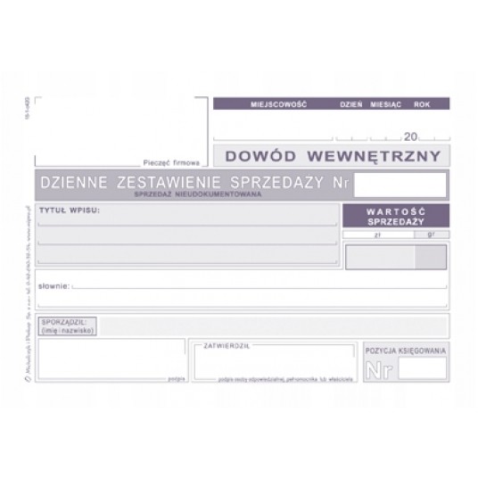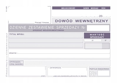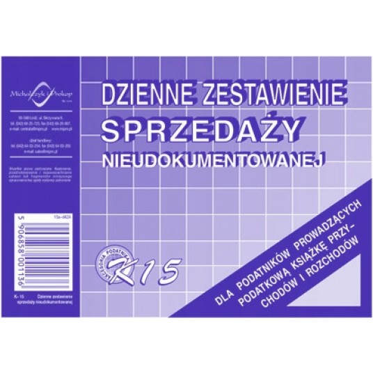 - Druk K-15 Dzienne zestawienie sprzedaży nieudokumentowanej dla podatnikówprowadzących podatkową księgę przychodów i rozchodów A6 Michalczyk iProkop.