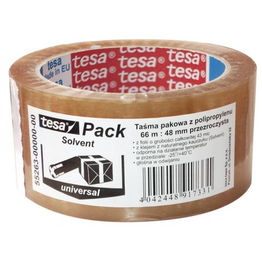 - Przezroczysta taśma pakowa polipropylenowa powlekana klejem kauczukowym - Doskonała do zaklejania paczek, kartonów i kopert oraz wielu innych zastosowań - Gwarantuje bezpieczne zamknięcie dzięki odporności na ścinanie i dobrej przylepności - Kompatybilna z wszystkimi ręcznymi dyspenserami tesa® - Najbardziej efektywna w temperaturach z zakresu -25.C - +40 st.C