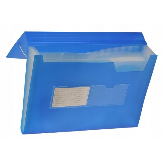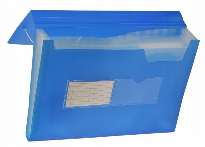 - Teczka harmonijkowa PP z gumką, mieszcząca format A4 - Teczka posiada 13 przegród - Wymiary teczki: 330x245x32 mm - grubość tworzywa PP: 0,60 mm - Dostępna w czterech kolorach (niebieski, czerwony, pomarańczowy, żółty)