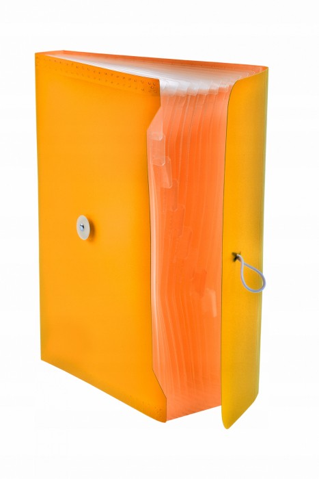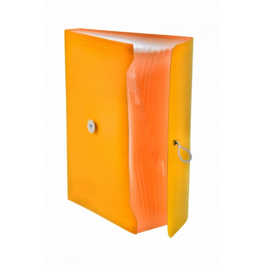 - Teczka harmonijkowa PP z gumką, mieszcząca format A4 - Teczka posiada 13 przegród - Wymiary teczki: 330x245x35 mm - Grubość tworzywa PP: 0,50 mm - Dostępna w pięciu kolorach (niebieski, czerwony, pomarańczowy, żółty, czarny)