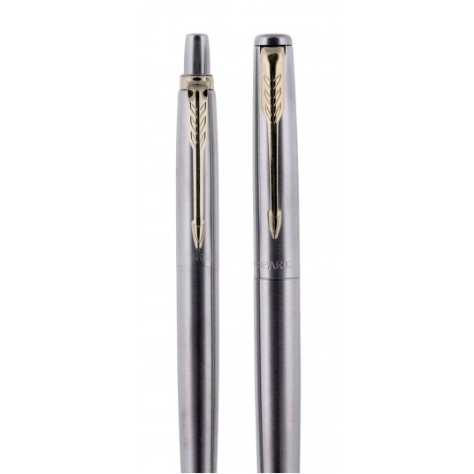- zestaw prezentowy: długopis z wkładem oraz pióro wieczne z nabojem - marka: Parker - seria: JOTTER STAINLESS STEEL - wykończenie: GT - kolor korpusu i nasadki: srebrny - rodzaj lakieru: stal - stalówka: długopis M, pióro M - kolor wkładu i naboju w zestawie: niebieski - opakowanie: tekturowa obwoluta z przezroczystym okienkiem - idealny elegancki zestaw na prezent