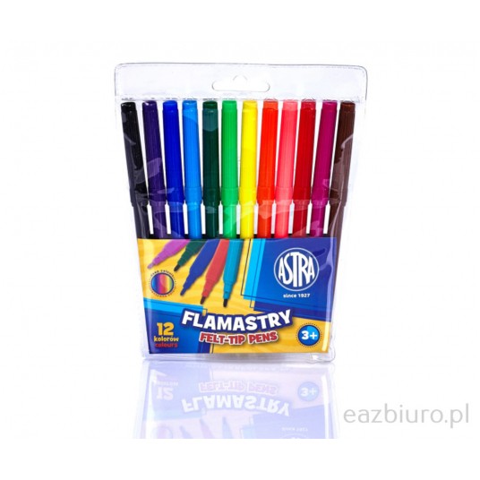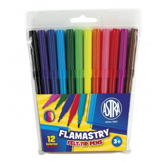 - Wysokiej jakości flamastry produkowane są według najlepszych norm jakościowych - Dobra jakość tuszu oraz żywe kolory zapewnią dzieciom długie godziny zabawy - Flamastry ASTRA posiadają wentylowaną skuwkę