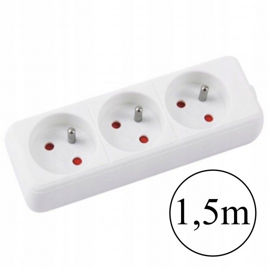 - Posiada wbudowany warystor w celu ochrony przed przepięciem - Wyposażony w zabezpieczenie przed dziećmi - Długość przewodu: 1,5m - Ilość gniazd z uziemieniem: 3 - Gniazdka umieszczone pod kątem 45° - Kolor biały