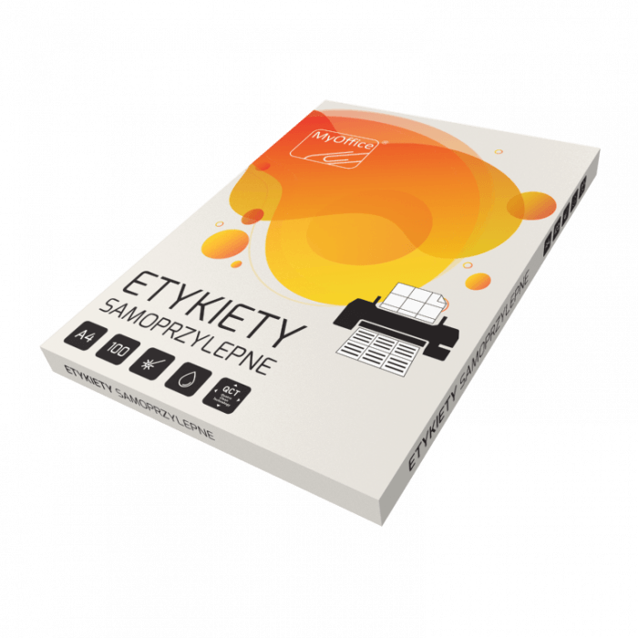 - białe, samoprzylepne dostarczane na arkuszach o formacie A4