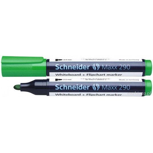 - Marker do tablic i flipchartów z okrągłą końcówką - Grubość linii 2-3 mm - Obudowa jest wykonana z 95% tworzywa sztucznego nadającego się do odzysku - Intensywny kolor pisma na tablicy i papierze jest dobrze czytelny nawet z ostatnich rzędów - Z tablicy bardzo łatwo daje się zetrzeć na sucho, a na flipcharcie nie przebija na kolejne kartki - System „cap off” zapobiega wysychaniu nawet gdy pozostanie nie zamknięty przez 2-3 dni - Jest prawie bezwonny i nie zawiera toluenu ani ksylenu - Nowy masywny format zapewnia najwyższą wydajność, a innowacyjna okrągła końcówka umożliwia przyjemne, miękkie pisanie bez niemiłego odgłosu skrzypienia - Maxx 290 posiada praktyczną skuwkę z klipem - Kolor zielony