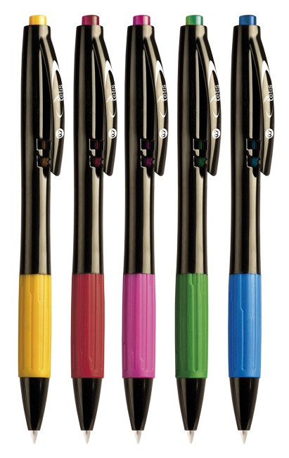 - Długopis z bocznym automatem chowania wkładu.