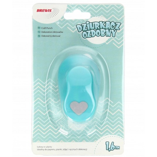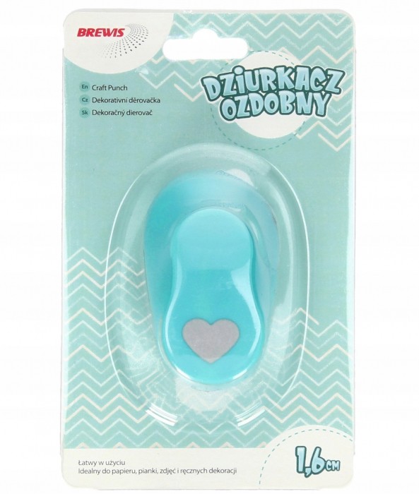 - Dziurkacz ozdobny Brewis, wykrawający otwór w kształcie serca - Prosty w obsłudze dziurkacz, który doskonale sprawdzi się w dziurkowaniu papieru lub pianki - Nieoceniona pomoc przy tworzeniu kartek okolicznościowych, ozdobnych kopert oraz różnego rodzaju dekoracji - Model: D16-04 - Kształt otworu: serce - Wielkość otworu: 1.6cm
