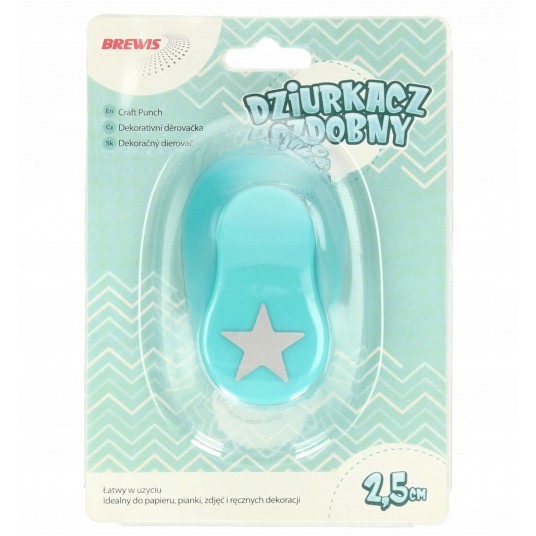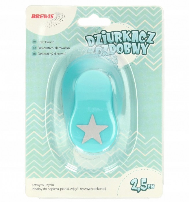 - Dziurkacz ozdobny Brewis, wykrawający otwór w kształcie gwiazdki - Prosty w obsłudze dziurkacz, który doskonale sprawdzi się w dziurkowaniu papieru lub pianki - Nieoceniona pomoc przy tworzeniu kartek okolicznościowych, ozdobnych kopert oraz różnego rodzaju dekoracji - Model: D25-03 - Kształt otworu: gwiazdka - Wielkość otworu: 2.5cm