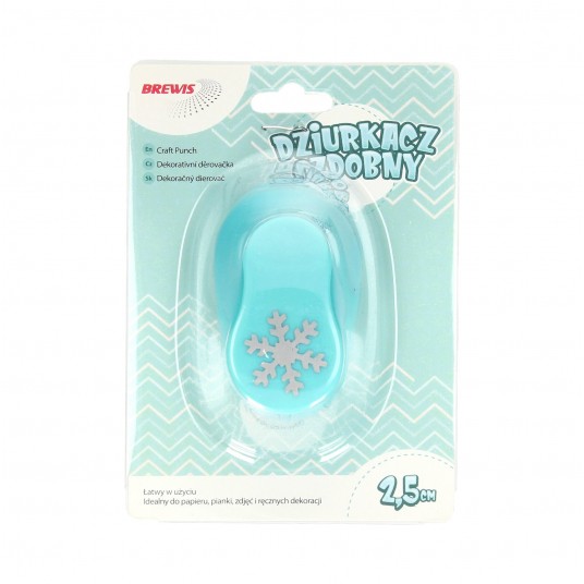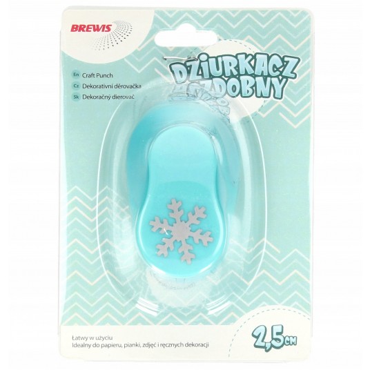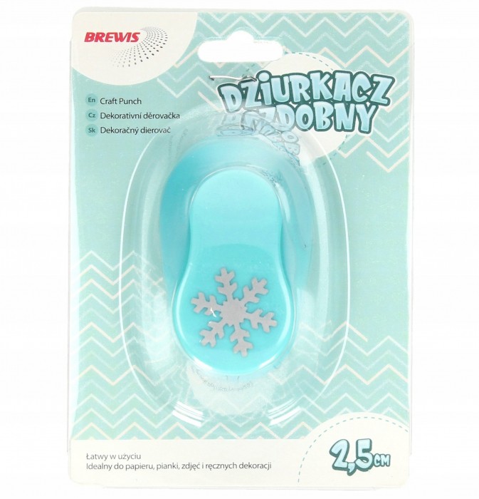 - Dziurkacz ozdobny Brewis, wykrawający otwór w kształcie śnieżynki - Prosty w obsłudze dziurkacz, który doskonale sprawdzi się w dziurkowaniu papieru lub pianki - Nieoceniona pomoc przy tworzeniu kartek okolicznościowych, ozdobnych kopert oraz różnego rodzaju dekoracji - Kształt otworu: śnieżynki - Wielkość otworu: 2.5cm