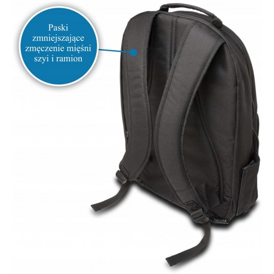 Zapewnia bezpieczne przechowywanie laptopa lub ultrabooka o przekątnej ekranu do 15,6" oraz akcesoriów Paski naramienne z miękką podkładką zmniejszają zmęczenie mięśni szyi i ramion Liczne kieszenie na akcesoria pozwalają utrzymać porządek