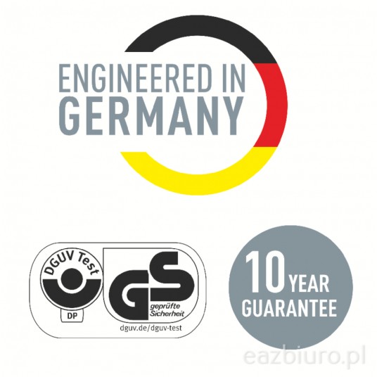 - Poręczny zintegrowany rozszywacz 10-letnia gwarancja przy stosowaniu zszywek Leitz oraz certyfikat bezpieczeństwa GS