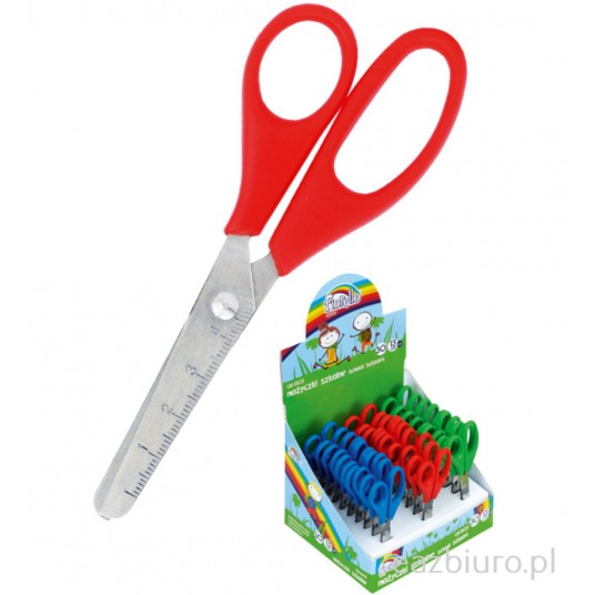 - Wysokiej jakości nożyczki z nierdzewnej, hartowanej stali - Ergonomiczne uchwyty z tworzywa sztucznego w różnych kolorach - Okrągłe końcówki - Rozmiar 5,25” (13 cm) - Posiadają linijkę - Opakowanie 30 sztuk - Cena za sztukę