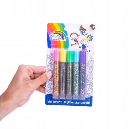 - Dekoracyjny bezbarwny klej w płynie zawierający drobinki brokatu