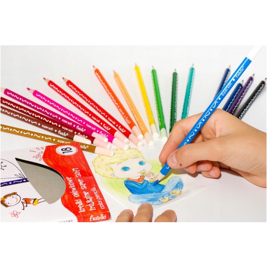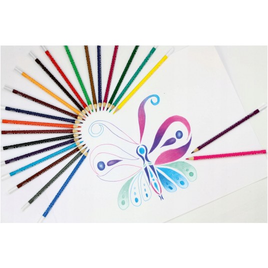 - Ostrzone - Przekrój trójkątny - Długość 17,8 cm - Lakierowane - Bardzo miękki grafit - Intensywne kolory - Praktyczne opakowanie - po otwarciu wygodny dostęp do kredek - Każda kredka posiada nadruk i lakierowaną końcówkę - Zgodne z wymaganiami UE - Średnica grafitu 3 mm - 18 kolorów