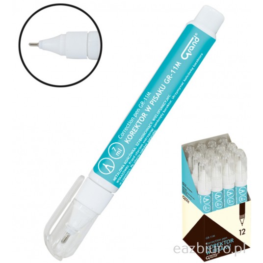 – szybkoschnący – niewidoczny na fotokopiach – każdy korektor posiada indywidualny kod kreskowy – precyzyjna metalowa końcówka – grubość linii 2 mm – pojemność 7 ml – gwarancja 2 lata – opakowanie: 12 szt.