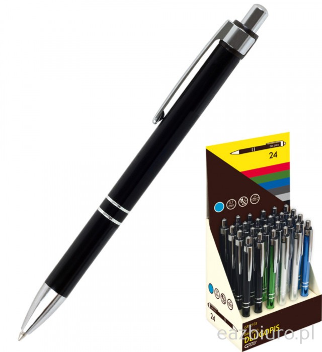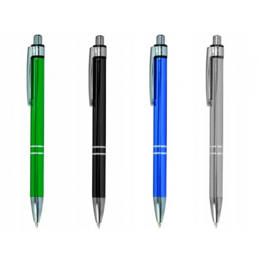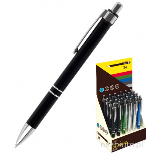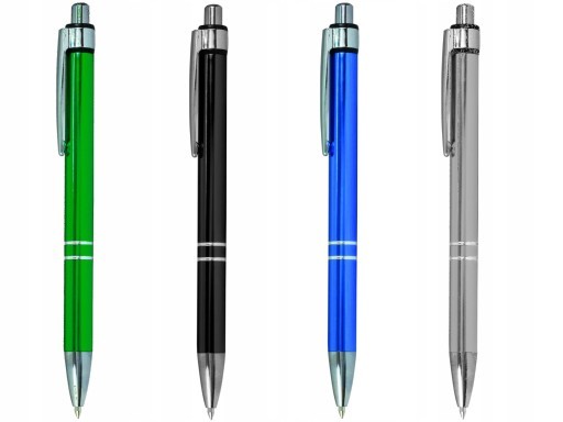 – automatyczny z wymiennym wkładem – przeznaczony pod nadruk reklamowy – nie posiada żadnych oznaczeń – indywidualny kod kreskowy w formie naklejki usuwalnej bez śladu – tusz wodoodporny – długość pisania: 1500 m – grubość linii 0,7 mm – niebieski kolor tuszu – opakowanie: 24 szt.