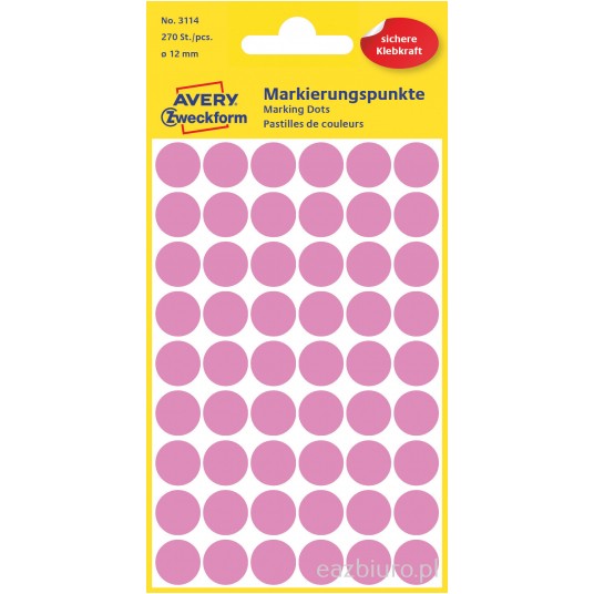 Kolorowe kółka do zaznaczania Avery Zweckform; 270 etyk./op., o12 mm, jasnoróżowe | espryciarze.pl |Kup w super cenie!