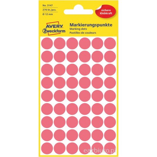Kolorowe kółka do zaznaczania Avery Zweckform; 270 etyk./op., o12 mm, czerwone odblaskowe | espryciarze.pl |Kup taniej!