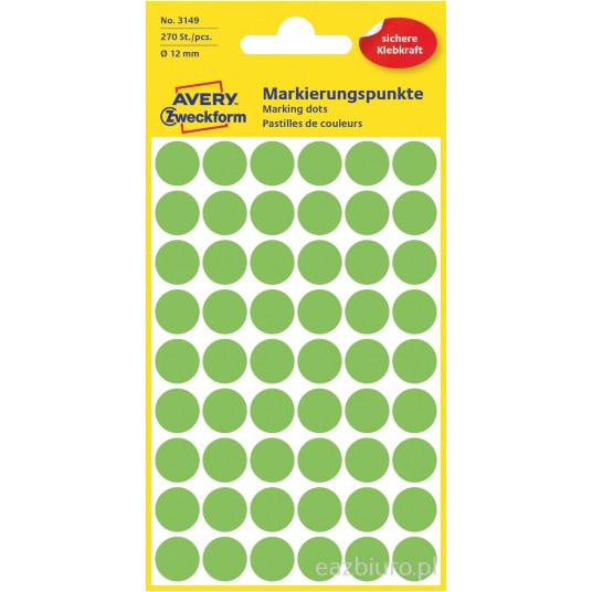 Kolorowe kółka do zaznaczania Avery Zweckform; 270 etyk./op., o12 mm, zielone odblaskowe | espryciarze.pl |Weź najlepszą cenę!